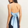The satin back tie detail cami is a sophisticated and luxurious piece that adds a touch of elegance to your outfit. The satin fabric offers a silky and smooth texture, perfect for dressing up any look. The back tie detail adds a feminine and chic element, allowing you to adjust the fit to your liking. This cami is versatile and can be styled in various ways – wear it alone with jeans or dress it up with a blazer and trousers for a more formal look. The satin fabric and tie detail create a sleek and stylish ensemble that is perfect for both casual and dressier occasions.