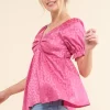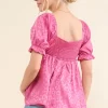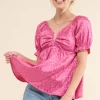 Satin Leopard V Wired Puff Sleeves Blouse – Fuchsia