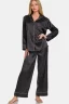 Satin Long Sleeve Shirt and Pants Pajama Set – Black