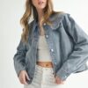 The Scallop Peter Pan Collar Denim Jacket is a charming and elegant addition to your wardrobe. The scallop detailing and Peter Pan collar add a touch of sweetness and femininity to this classic denim jacket. Pair it with a dress or jeans for a chic and stylish look.