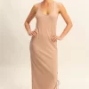 Scoop Neck Side Tie Detail Midi Dress – Dark Taupe