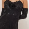 The Sequin Rosette Halter Mini Dress is a glamorous and eye-catching piece. The sequins add a touch of sparkle and shine to the dress. The rosette detailing on the halter neckline is a beautiful and elegant accent. This dress is perfect for special events or nights out where you want to stand out. Pair it with heels and statement jewelry for a stunning look.