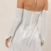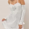 The Sequin Rosette Halter Mini Dress is a glamorous and eye-catching piece. The sequins add a touch of sparkle and shine to the dress. The rosette detailing on the halter neckline is a beautiful and elegant accent. This dress is perfect for special events or nights out where you want to stand out. Pair it with heels and statement jewelry for a stunning look.
