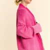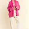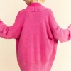 Shawl Collar Ribbed Detail Button Up Cardigan – Hot Pink