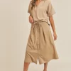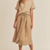 Short Sleeve Top and Button Down Midi Skirt Set – Taupe