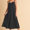 This midi cami dress is adorned with stylish side buttons for a unique and trendy touch. The sleek design offers a flattering silhouette that can be dressed up or down with ease. Elevate your wardrobe with this chic side button midi cami dress.