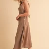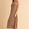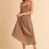 This midi cami dress is adorned with stylish side buttons for a unique and trendy touch. The sleek design offers a flattering silhouette that can be dressed up or down with ease. Elevate your wardrobe with this chic side button midi cami dress.