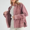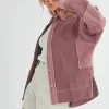 Side Slit Exposed Seam Button Up Corduroy Jacket – Dusty Pink