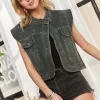 Sleeveless Button Down Denim Jacket – Denim