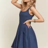 Smocked Back Square Neck Denim Dress – Denim Blue