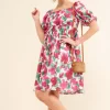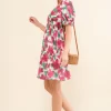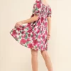 Smocked Floral Ruffle Short Sleeve Mini Dress – Fuchsia