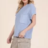 Solid Cap Sleeve Stitch Edge Knit Sweater – Blue