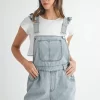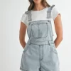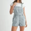 Square Neck Ruffle Shoulder Denim Overall Romper – Lt Denim