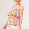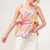 Square Neck Tiered Paisley Printed Top features a stylish square neckline. The top is designed with tiered layers for a unique and flattering silhouette. The paisley print adds a touch of bohemian flair to this versatile piece.