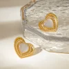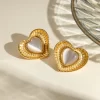 Stainless Steel Cat’s Eye Stone Heart Earrings – Gold