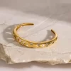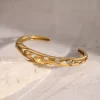 Stainless Steel Inlaid Rhinestone Cutout Bracelet – Gold
