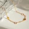Stainless Steel White Mother-Of-Pearl Flower Necklace - Gold