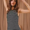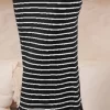 Stripe Sleeveless Sweater Knit Maxi Dress With Ruffled Hem – Black/Off White