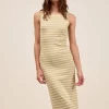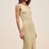 Stripe Sleeveless Sweater Knit Maxi Dress With Ruffled Hem – Sage/Off White
