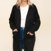 Stripe Textured Open Front Cardigan with Pockets – Black
