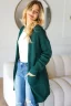 Stripe Textured Open Front Cardigan with Pockets – Hunter Green