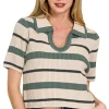 Striped Collared Short Sleeve Cropped Sweater – Ash Jade