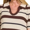 Striped Collared Short Sleeve Cropped Sweater – Brown