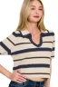 Striped Collared Short Sleeve Cropped Sweater – Navy