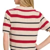 Striped Collared Short Sleeve Cropped Sweater – Red