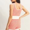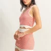 Striped Cropped Tank and Shorts Set – Coral/Cream