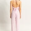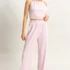 Striped Halter Neck Top and Pants Set – Pink/White