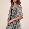 The striped poncho boho cardigan is a versatile and stylish layering piece. Its bohemian-inspired design adds a touch of flair to any outfit. Perfect for creating a relaxed and chic look with a cozy feel.