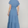 Surplice Short Sleeve Tiered Maxi Dress With Pockets – Cerulean