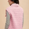 Texture Quilted Snap Down Vest Coat – Blush Pink