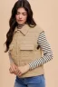 The Texture Quilted Snap Down Vest Coat is a versatile and stylish outerwear piece that offers both warmth and fashion-forward design. The quilted texture adds depth and visual interest to the coat, making it a standout piece. The snap-down closure provides convenience and a modern touch, while the vest style offers layering options for different looks. This coat is perfect for adding an extra layer of warmth and style to your outfit during the cooler months. With its combination of texture, quilting, and snap closures, this vest coat is a chic and functional addition to your wardrobe.