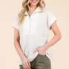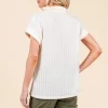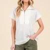 Textured Half Zip Cap Sleeve Contrast Top - White