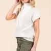 Textured Half Zip Cap Sleeve Contrast Top – White