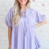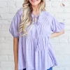Textured Pintuck Blouse Top with Tassels – Lavender
