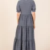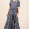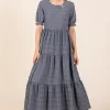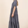 Textured Short Sleeve Tiered Dress – Charcoal