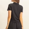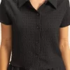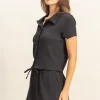 Textured Short Sleeve Top and Drawstring Shorts Knit Set – Black