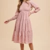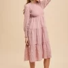Textured Smocking Bodice Tiered Midi Dress – Mauve