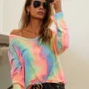 Tie Dye French Terry Long Sleeve Knit Top – Pastel Tiedye