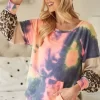 The Tie Dye French Terry Pullover Top with Contrast detailing combines comfort with style for a trendy look. The tie-dye pattern adds a playful and colorful touch to the French terry fabric, making it a casual yet fashionable piece. The contrast detailing adds visual interest and helps highlight the tie-dye design. This pullover top is perfect for a relaxed and laid-back outfit with a pop of personality. Pair it with your favorite jeans or leggings for a cozy and chic look. The combination of tie-dye and contrast detailing creates a modern and stylish top that is perfect for casual occasions.