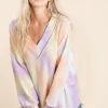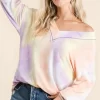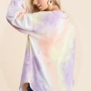 Tie Dye French Terry V-Neck Top with Puff Sleeves – Lavender Multi
