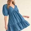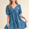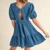 Tied Back Ruffled Short Sleeve Mini Dress – Azure