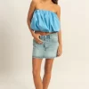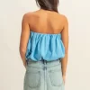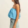 Trendy Strapless Bubble Top – Blue