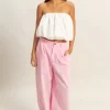 The trendy Strapless Bubble Top is a stylish and chic piece that features a strapless design and a bubble hem for a modern look. This top adds a touch of elegance and sophistication to any outfit, making it a versatile choice for various occasions.