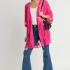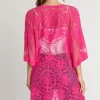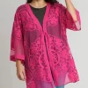 Umgee Full Size Floral Lace Open Front Kimono Sleevee Cover Up with Waist Tie Plus Size – Hot Pink