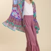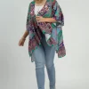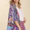 Umgee Full Size Mixed Print Ruffle Hem Open Front Cover Up Plus Size – Turquoise
