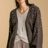 Umgee Full Size Open Front Cardigan with Long Sleeve Pearl Details Plus Size – Charcoal